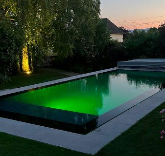 L’éclairage met en valeur votre piscine en lui donnant de l’élégance et de la modernité. Il permet de délimiter la zone de baignade en soirée. Il créé une ambiance magique dès la tombée de la nuit en prolongeant la baignade.